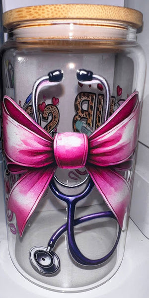 Nurse 16 oz glass cup ready to be shipped out. This is a single wall NOT a snow globe cup.